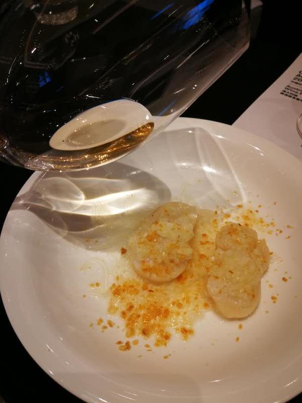 “粵菜本身不是辣咸濃的菜式,選酒的時候要特別注意,最好不要選擇會壓住菜肴本身的風(fēng)味的酒款,”趙鳳儀說。對于同一款菜肴,她給出的酒款推薦是來自獵人谷的賽美蓉,這支經(jīng)過一定時間陳年的酒款有著漂亮的礦物質(zhì)風(fēng)味,但也不失果味,與蒸帶子本身的海洋質(zhì)感形成了良好的呼應(yīng)。